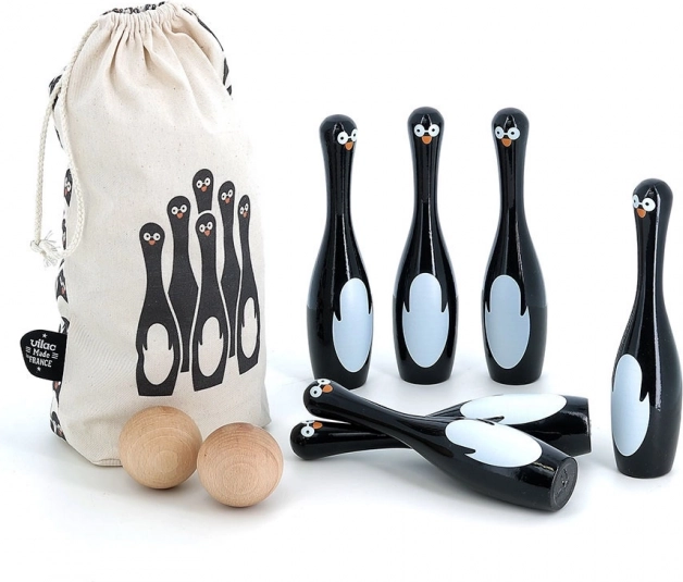 De set bevat zes kegels in de vorm van pinguïns en twee houten ballen. Dit spel biedt niet alleen urenlang plezier, maar helpt ook om motorische vaardigheden en behendigheid te ontwikkelen. De kegels zijn in Frankrijk gemaakt met behulp van een traditioneel lakproces dat hoge kwaliteit en duurzaamheid garandeert.