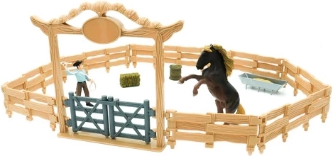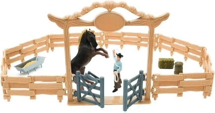 De Westerse ranch voor kinderen met paard en cowboy is de ideale keuze voor elk kind dat van avontuur en fantasie houdt. Deze speelgoedset valt op door de indrukwekkende details en de authenticiteit van de afzonderlijke figuren. De ranch is gemaakt van hoogwaardig polyvinylchloride, wat duurzaamheid en een lange levensduur garandeert.