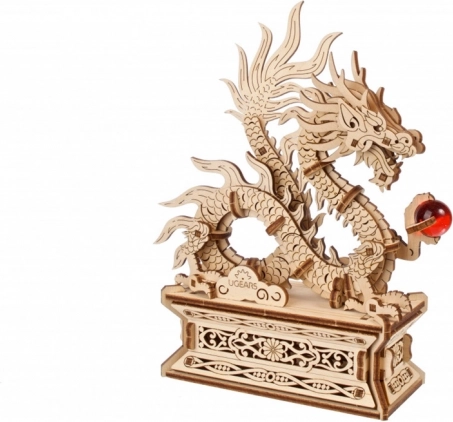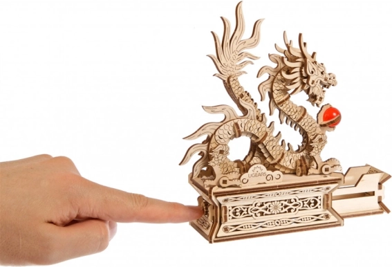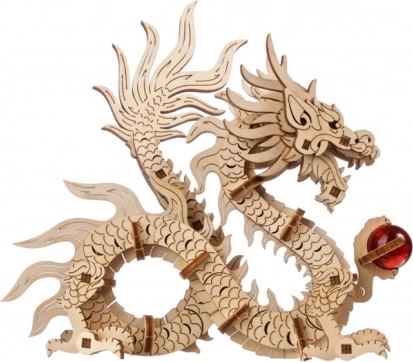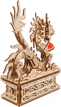 Het model is volledig beweegbaar en de draak kan eenvoudig van de sokkel worden verwijderd. In de basis schuilt een geheime opbergruimte – door op de onopvallende knop in het bloemmotief te drukken onthul je plek voor een persoonlijke boodschap, een amulet of de nieuwjaarsrode envelop „hóngbāo“. De onderdelen zijn voorgesneden en passen precies, waardoor je geen lijm nodig hebt en de bouw een plezier is.