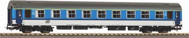 Het model vangt trouw de sfeer van tijdperk V bij de Tsjechische Spoorwegen en biedt een precieze uitvoering met aandacht voor details – van de deuren en draaistellen tot het verfijnde interieur. Dankzij de korte koppelingen met precieze PIKO-kinematica en nauwe koppelstukken biedt het vloeiende en prototypisch realistische rijeigenschappen.