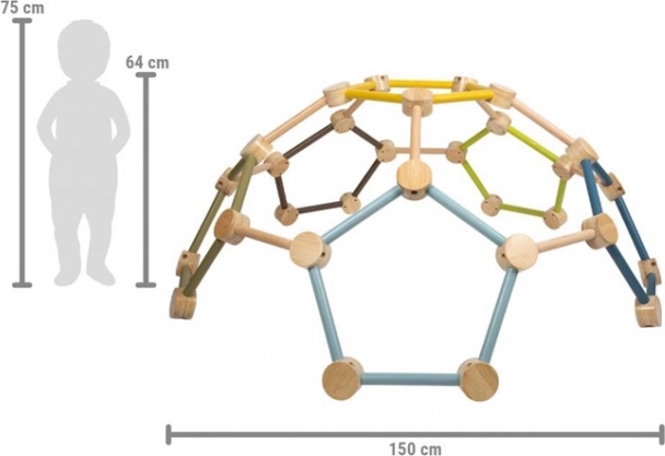 De geometrische koepel motiveert kinderen om te bewegen, ontwikkelt fijne en grove motoriek en bouwt zelfvertrouwen op bij het overwinnen van uitdagingen.