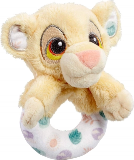 Schattige pluchen rammelaar met SIMBA uit De Leeuwenkoning, ideaal voor kleine kinderhandjes. Dankzij het zachte pluchen materiaal, het zachte gerammel en de natuurlijke kleuren stimuleert het de zintuigen en werkt het rustgevend. Geschikt vanaf de geboorte – een geweldig idee voor een cadeau voor pasgeborenen.