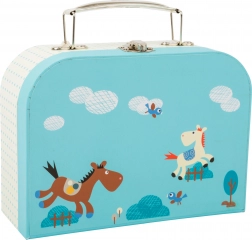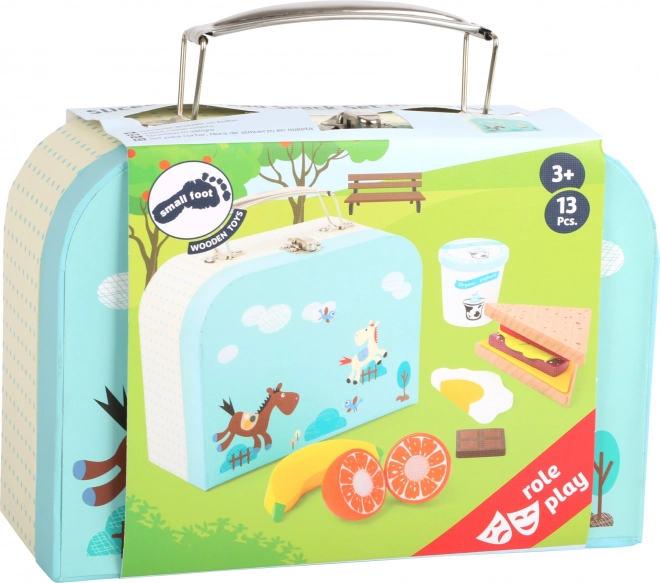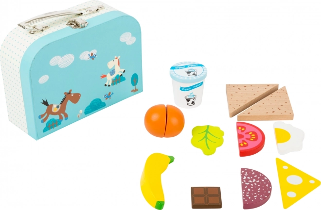 Stijlvol en duurzaam snackkoffertje in blauwe kleur van het merk Small Foot, ideaal voor kinderkeukens en rollenspellen in de winkel. Gemaakt van hoogwaardig hout, voldoet aan de strenge normen EN 71 en gebruikt veilige, speekselbestendige verven. Stimuleert fijne motoriek, zintuiglijke waarneming en biedt langdurig speelplezier voor kinderen vanaf 3 jaar.