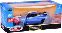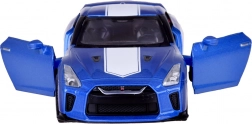 Ontdek de iconische NISSAN GT‑R in elegante blauwe kleur als hoogwaardig die‑cast model 1:32. De metalen carrosserie, rubberen banden en kunststof chassis geven de auto een realistische look en duurzaamheid tijdens het spelen. Dankzij het Friction power mechanisme hoef je het autootje alleen maar over een glad oppervlak te trekken en los te laten.