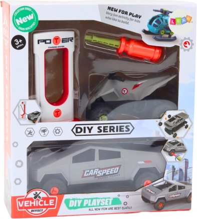 Creatieve set voor kleine technici: grijze moderne auto, quad en laadstation om te monteren. Kinderen oefenen hun fijne motoriek en begrijpen de basis van mechanica door te schroeven en te assembleren. Inclusief schroevendraaier. Het speelgoed is gemaakt van hoogwaardige materialen, heeft de CE-certificering en voldoet aan de EN71-norm, geschikt voor kinderen vanaf 3 jaar.