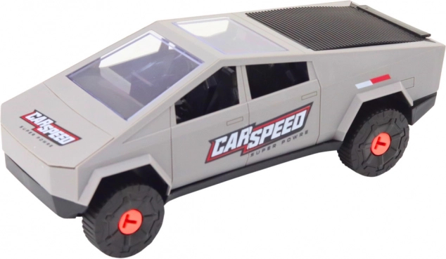 Elegante grijze wagen met gedetailleerde afwerking en futuristische lijnen stimuleert actief spel en monteren.