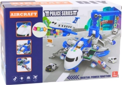Uitgeklapt verandert het vliegtuig in een mobiel politiebureau, vanwaar drie metalen interventievoertuigen vertrekken. Op het dak bevindt zich een speciale platform die bij het indrukken van de knop de politieauto “weglanceert” voor een snelle inzet. Inclusief verkeersborden, pylonen en bomen om eigen scènes te bouwen. Een draaibare kraan met 360° rotatie en een met een wieltje bedienbaar hefplatform voegen extra speelmogelijkheden toe.