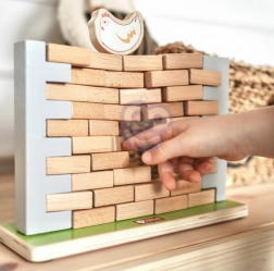 Dit hoogwaardige houten balansspel biedt eenvoudige regels en veel spanning. Het doel is om blokjes uit de muur te halen zonder dat de kip bovenop naar beneden valt. Kinderen oefenen geduld, concentratie en probleemoplossend vermogen terwijl ze plezier hebben met ouders of broers en zussen.