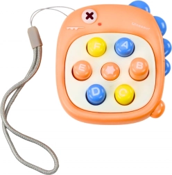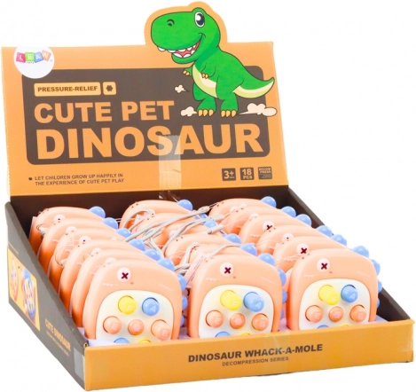 De draagbare Whack a Mole-speelgoedset valt op door het vrolijke ontwerp van een oranje dinosaurus en de eenvoudige bediening. Hij is bedoeld voor de allerkleinsten, die spelenderwijs hun aandacht, reflexen en coördinatie verbeteren. De belangrijkste taak is zo snel mogelijk op de knoppen te drukken die willekeurig op het oppervlak van het speelgoed verschijnen.