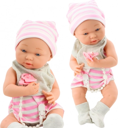 Met Stoffen Baby in Wit-Roze Kleding ontdekken kinderen de magische wereld van verbeelding en zorgzaamheid. Ze heeft realistische gelaatskenmerken die als een echte baby overkomen, waardoor het authenticiteit en diepte toevoegt aan kinderlijke ervaringen.