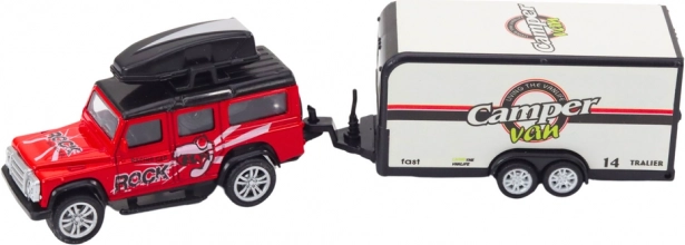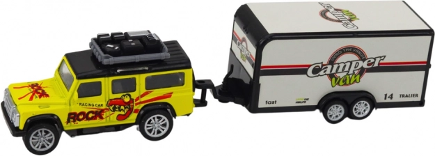 Terreinautootje met caravan-aanhanger