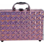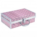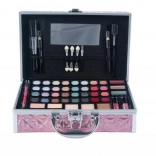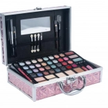 Stijlvolle roze cosmetische koffer met complete make-upuitrusting voor dagelijks gebruik en op reis. Bevat 24 oogschaduws, glitters en lipglosses, blushes en poeders, praktische kwasten en applicators en een ingebouwde spiegel. De stevige uitvoering en overzichtelijke vakken zorgen ervoor dat je je cosmetica altijd bij de hand en perfect geordend hebt.