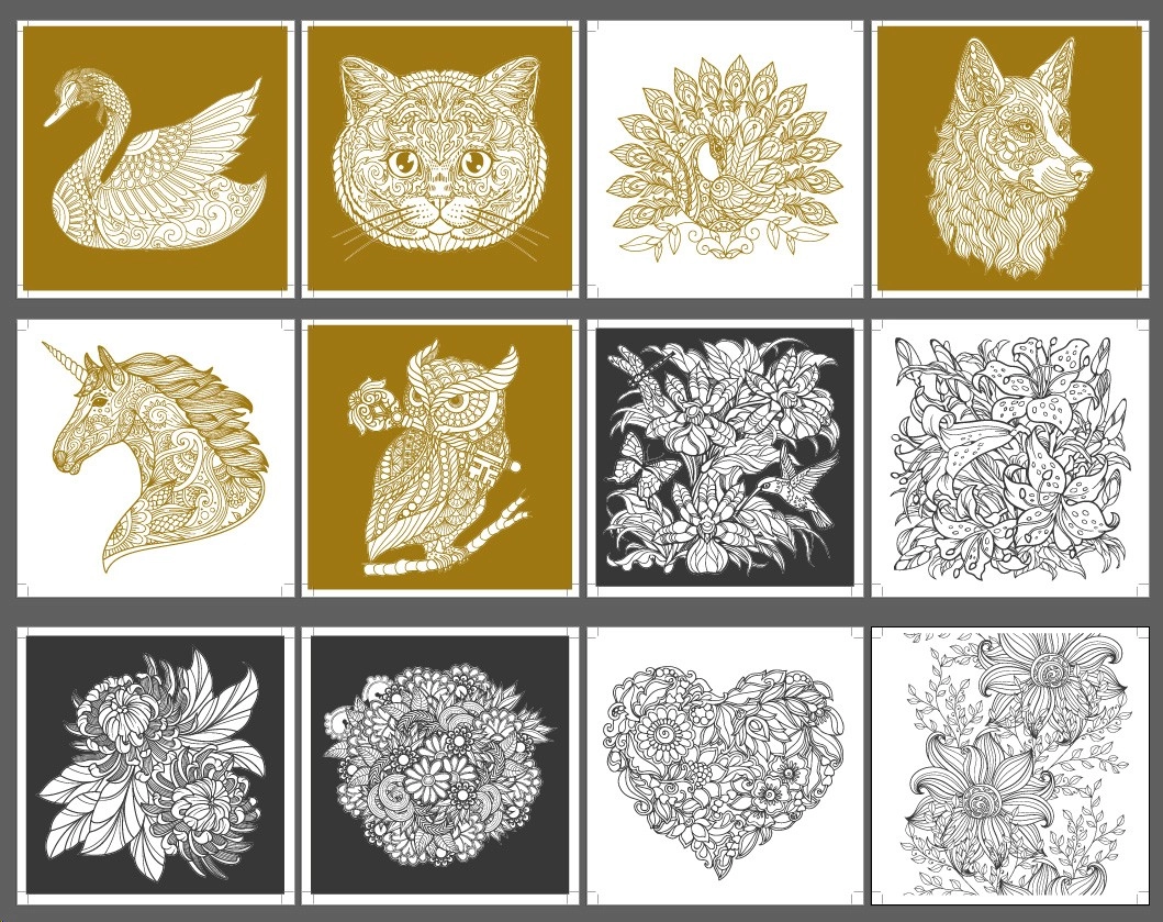 Geschikt voor gangbare tekentechnieken – kleurpotloden, stiften en fineliners. Dankzij de hoogwaardige bedrukking en metallic accenten is het eindresultaat opvallend en decoratief, ook ideaal als origineel cadeau.