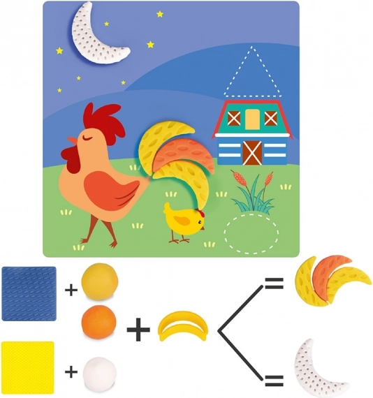 Bonte, getextureerde stukjes stimuleren de verbeeldingskracht van kinderen.