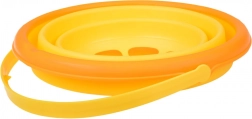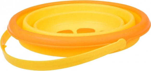 Geen onhandige emmers meer in de auto. Deze opvouwbare emmer van zachte siliconen en kunststof vouw je in een seconde plat en klap je net zo snel weer uit. Dankzij het comfortabele handvat is hij makkelijk te dragen en de levendige citroenkleuren zijn een hit bij kinderen.
