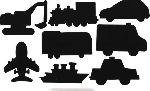 Ontwikkel de creativiteit van kinderen met krasplaatjes van vervoersmiddelen. De set bevat 8 zwarte silhouetten die kleurrijke motieven onthullen.