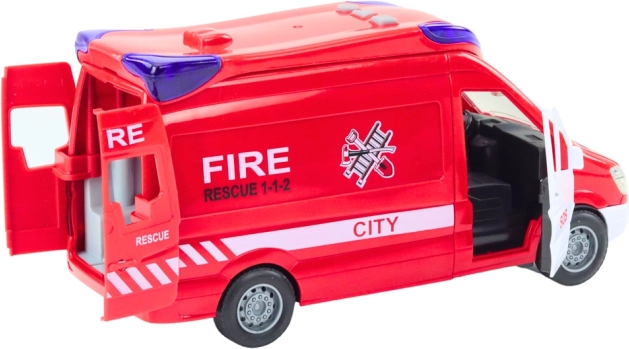 Rode brandweerauto voor kinderen biedt realistisch speelplezier met knipperende lichten, sirene en opendeuren. Dankzij de aandrijving beweegt het voertuig vlot over verschillende oppervlakken, terwijl de stevige kunststof constructie duurzaamheid en veiligheid garandeert. Geschikt voor kinderen vanaf 3 jaar, inclusief 2× AA-batterijen.