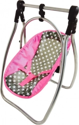 Deze praktische set combineert twee favoriete speelstukken in één: in een handomdraai verander je de schommel in een kinderstoel dankzij de afneembare bovenbeugel en het meegeleverde tafeltje. Het stevige metalen frame, de kunststof koppelingen en de kwalitatieve stoffen bekleding met sterrenpatroon zorgen voor veiligheid en comfort voor de pop.