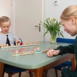 Stevige houten standaards en kleurrijke figuren ondersteunen de fijne motoriek en zijn bestand tegen veelvuldig spelen.