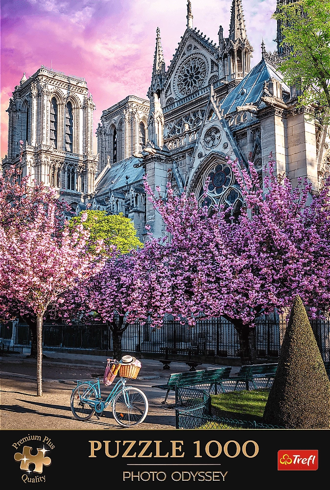 Ontdek de schoonheid van Parijs met het motief van de kathedraal Notre‑Dame, vastgelegd in de zachte tinten van lentebloesems. De puzzel met 1000 stukjes blinkt uit door scherpe print en natuurgetrouwe details, zodat je van het leggen geniet van het eerste tot het laatste stukje. Na het leggen ontstaat een afbeelding van 48 × 68,3 cm, perfect om in te lijsten.