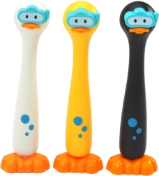 Leuke set van drie duikende badeendjes voor kinderen vanaf 6 jaar in de kleuren wit, zwart en geel. Voorzien van gewichtjes voor makkelijk zinken, stimuleert behendigheid, coördinatie en zelfvertrouwen in het water. Ideaal voor in bad en in het zwembad, met CE-certificering en conform EN71.