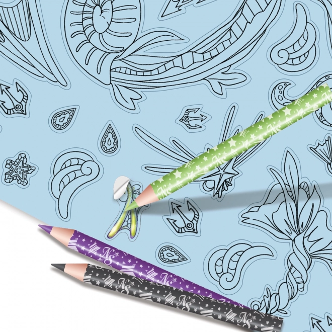 Creatief kleurboek Nebulous Stars – groen. 250 stickers, 12 kleurpotloden, 80 sjablonen, 35 vellen, 4 vormpjes en instructies voor 12 technieken. Vanaf 7 jaar.