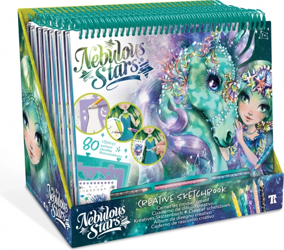 Ontdek de magische wereld van NEBULOUS STARS met dit creatieve schetsboek in groen. De set biedt alles voor creatief plezier – van 250 stickers en 12 kleurpotloden tot 80 sjablonen en 35 afbeeldingsvellen. Dankzij de instructies voor 12 tekentechnieken ontwikkelen kinderen hun fantasie, fijne motoriek en gevoel voor kleur. Ideaal cadeau voor kleine kunstenaars vanaf 7 jaar.