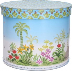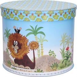 We presenteren een ronde doos met het motief van De Mol en de leeuw, die niet alleen esthetisch is, maar ook een praktische toevoeging aan elke kinderkamer. Dankzij de compacte afmetingen van 25 x 25 x 21 cm biedt hij voldoende opbergruimte voor speelgoed, boekjes of andere kinder schatten.