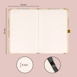 Binnenin vind je 172 pagina’s op hoogwaardig geel papier, ideaal voor dagelijks schrijven. Perfect als dagboek, voor werknotities, planning en creatieve ideeën. Het binnenvak biedt ruimte voor kleinigheden, visitekaartjes of stickers.