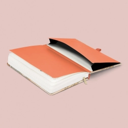 Dit stijlvolle notitieboek met ART NOUVEAU-motief van Alfons Mucha combineert tijdloos design met dagelijkse functionaliteit. De harde kaft beschermt de inhoud, de elastische band houdt alles bij elkaar en dankzij de pennenlus heb je altijd een pen bij de hand. Het binnenvak biedt plaats aan visitekaartjes, bonnetjes of klein papierwaren.
