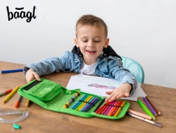 • Klassieke schoolpennenzak met één laag en twee kleppen.