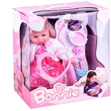 Bij het indrukken van het buikje of de handjes maakt de pop verschillende geluiden: lachen, huilen, brabbelen, “mama”, “papa”, drinken uit het flesje en een boertje. Zo ervaren kinderen nog echtere babyverzorging.
