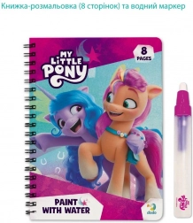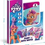 Waterkleuren My Little Pony is een creatieve set voor kinderen die de fantasie prikkelt zonder klassieke verf. Vul de meegeleverde pen met water en zie hoe afbeeldingen met de favoriete pony’s meteen inkleuren. Na het drogen vervagen de kleuren en kan het kind opnieuw kleuren.
