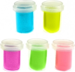 Glitterende boetseerklei voor kinderen vanaf 3 jaar zorgt voor uren creativiteit en plezier. In de verpakking vind je 5 potjes met glitterkleuren (roze, geel, blauw, groen, paars) die je kunt mengen om nieuwe tinten te creëren. De praktische potjes houden de klei zacht en kneedbaar voor verder knutselen.