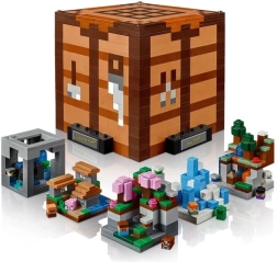 Het model is gebaseerd op de legendarische werkbank uit Minecraft en brengt de rijke wereld naar een compacte displaykubus. Binnenin vind je vijf los te koppelen minimodules die samen 12 diverse biomen voorstellen – van taiga en een weelderige grot tot ijsnaalden en de duisternis. Dankzij 8 microfiguren (Steve, Alex, skelet, heks, Creeper, dorpsbewoner, koe en varken) maak je moeiteloos iconische scènes.