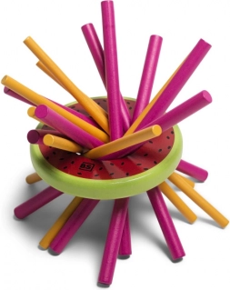 Stokjes eruit trekken zonder dat de meloen valt traint de precisie van bewegingen, oog-handcoördinatie en geduld. Een uitstekende keuze voor zinvol vermaak voor kinderen.
