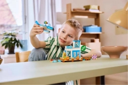 Ga op eilandavontuur met de creatieve set LEGO Animal Crossing Let’s DODO Airlines. Kinderen vanaf 7 jaar genieten van bouwen en spelen: de verkeerstoren, steiger naar het strand, oranje poort die open kan en het watervliegtuig met draaiende propeller bieden talloze scenario’s zoals in de game ANIMAL CROSSING. Inclusief de favoriete personages Wilbur en Tangy en ondersteuning via de LEGO Builder-app.