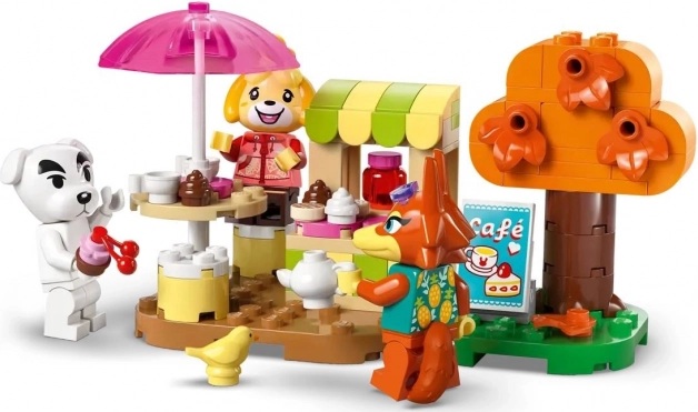 Breng iconische momenten uit ANIMAL CROSSING tot leven. Kinderen bouwen een plein met klokkentoren, café en gemeentehuis, bereiden het podium voor K.K., doen mee met een groepsstretch met Isabelle en nemen met Audie iets lekkers in het café. De wooncamper gaat open zodat K.K. kan overnachten, en de boom verbergt een verrassing – net als in de game.