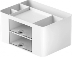 Deze witte bureau-organizer is de perfecte oplossing voor het behouden van orde en esthetiek in uw werkruimte. Gemaakt van hoogwaardig plastic, staat het bekend om zijn duurzaamheid en stevigheid. Dankzij het doordachte ontwerp en de veelzijdige vakken biedt het een optimale benutting van de beschikbare ruimte.
