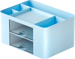 De blauwe organizer biedt 5 vakken en 2 laden voor verschillende opbergbehoeften.