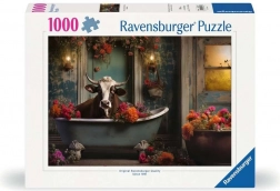 Geniet van rustgevend puzzelen met de RAVENSBURGER-puzzel van 1000 stukjes. De humor en charme van de illustratie van een koe in bad, omringd door bloemen, komen tot hun recht dankzij topkwaliteit print en precieze stans. Elk stukje heeft een unieke vorm en past slechts op één juiste plek.