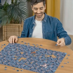 Dankzij de gepatenteerde SoftClick-technologie en handgemaakte stansgereedschappen hebben de stukjes unieke vormen en passen ze met een prettig “klikje”. De structuur van natuurlijk linnen op het oppervlak zorgt voor een anti-reflecterend effect en diepe, zuivere kleuren. De materialen zijn ecologisch en duurzaam, zodat je keer op keer kunt blijven puzzelen.