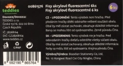 Set acrylstiften met intense fluorescerende kleuren voor universeel creatief gebruik. Geschikt voor papier, hout, stenen, glas, plastic en keramiek. In de verpakking zitten 6 opvallende tinten die uitstekend dekken en snel drogen. Ideaal voor decoreren, labelen en creëren zonder vlekken. Schudden voor gebruik. Geen speelgoed.