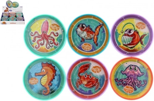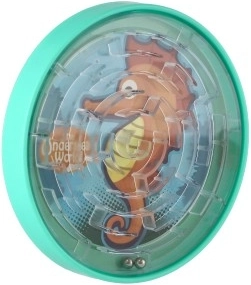 De ronde knikkerlabyrint met schattige illustraties van zeedieren biedt altijd en overal snel vermaak. Kantel zachtjes en leid de knikker van de rand naar het midden en weer terug. Het spel bevordert fijne motoriek, oog-handcoördinatie en strategisch denken.
