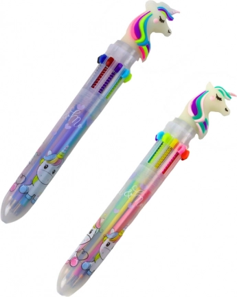 Een leuke en praktische meerkleurige pen met een eenhoornmotief biedt 10 kleuren in één. Dankzij het automatisch kleurwisselsysteem pas je schrijven en tekenen eenvoudig aan zonder van pen te wisselen. Het vrolijke eenhoorndesign stimuleert de creativiteit van kinderen en maakt alledaags schrijven leuker.