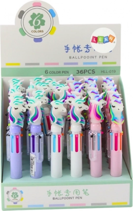 Een leuke en praktische meerkleurige pen met een eenhoornmotief biedt 6 kleuren in één. Dankzij het automatisch schakelen kies je eenvoudig de gewenste kleur om te schrijven of te tekenen. Het vrolijke design spreekt kinderen aan en maakt dagelijkse creativiteit leuker. Prijs per stuk, de kleur van het motief wordt willekeurig gekozen.