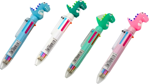 Verrijk de schoolspullen met een meerkleurige pen met een schattig dinosaurusmotief die creativiteit en functionaliteit combineert. In één behuizing vind je 6 verschillende inktkleuren, zodat je moeiteloos aantekeningen markeert, taken onderscheidt of kleurrijke tekeningen maakt.