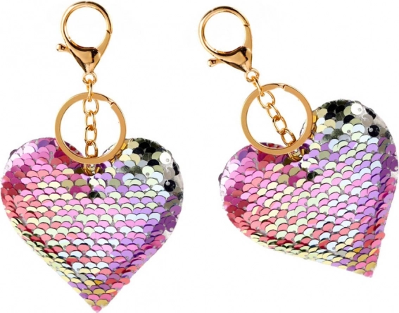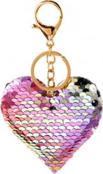 Elegant en stijlvol in één. Deze hartvormige hanger is versierd met roze pailletten, die glans en elegantie toevoegen. Wat deze hanger echt onderscheidt, zijn zijn dubbelzijdige pailletten. Met een handomdraai onthullen de pailletten hun zilveren kant, wat een opvallend contrast en effectieve designefficiëntie creëert.
