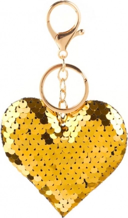 De sleutelhanger in de vorm van een hart is een charmante en stijlvolle accessoire die opvalt door zijn tweekleurige pailletten. Op het oppervlak van de hanger bevinden zich gouden pailletten die een glanzende uitstraling geven. Een unieke eigenschap van deze hanger is dat de pailletten tweekleurig zijn - bij aanraking draaien ze om en onthullen ze de zilveren kant, wat een contrasterend effect geeft en de aandacht trekt.