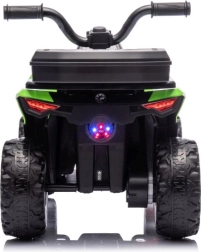 De groene elektrische kinderquad GTS1155 biedt kinderen een veilige en leuke rit, zowel binnen als buiten. De robuuste constructie, grote terreinbanden en comfortabele zitting zorgen voor stabiliteit en zeker stuurgedrag. Een realistische uitstraling, duurzame materialen en eenvoudige bediening met het stuur maken dit model een uitstekende keuze voor de eerste offroad-avonturen.